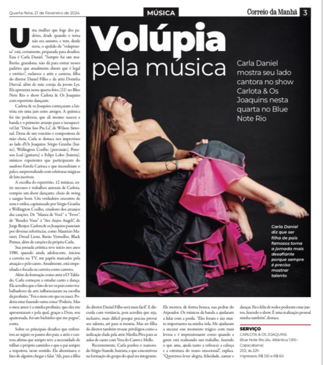 Com uma carreira diversificada, Carla Daniel é uma daquelas atrizes que domina todas as artes a que se propôs: é atriz, cantora e compositora e adora um bom desafio. Filha do renomado diretor Daniel Filho e da saudosa atriz Dorinha Duval, ela conta que não foi através dos pais que iniciou sua carreira artística. Apesar de sempre ter verdadeiro fascínio pelas artes, foi pelas mãos de Maria Clara Machado, no Tablado, que ela conheceu melhor o ofício e viu sua paixão aflorar.